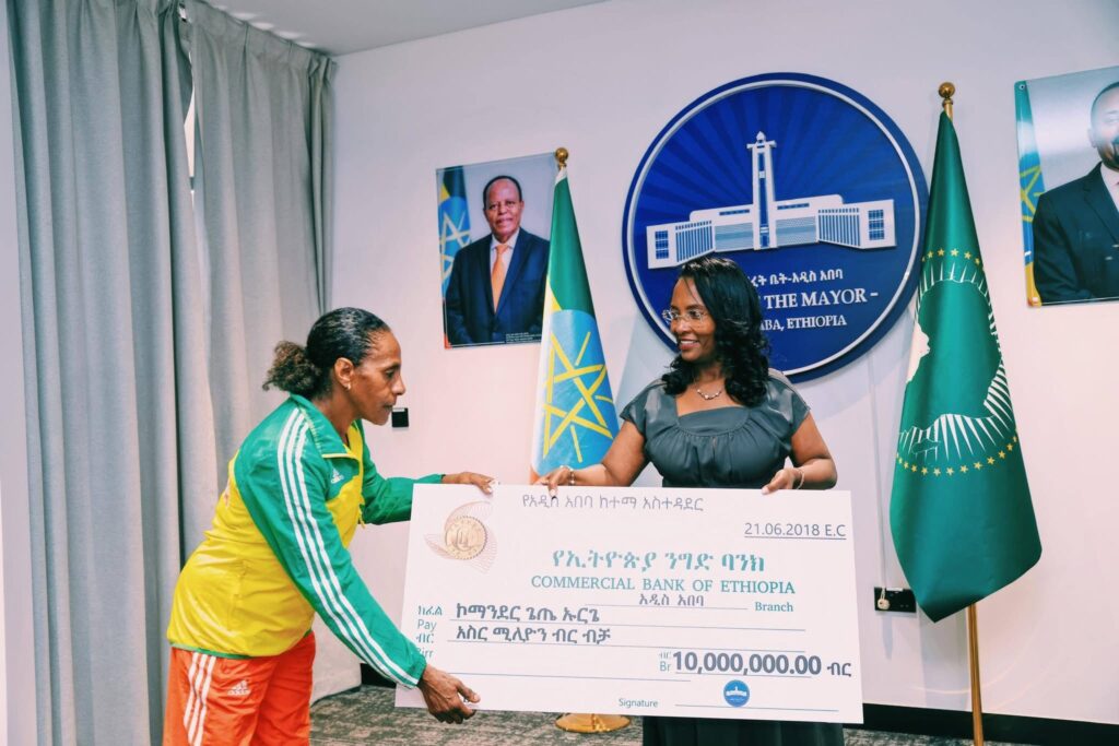 ክብርት ከንቲባ ወይዘሮ አዳነች አቤቤ ለአንጋፋ አትሌቶች ድጋፍ አደረጉ ።