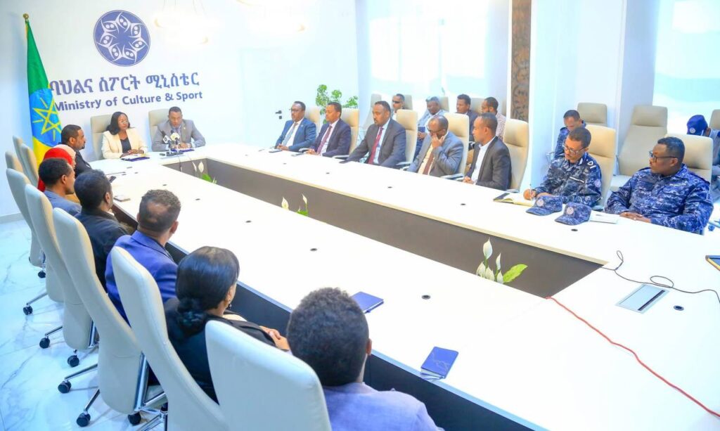የኢትዮዽያ ፌደራል ፖሊስ ኮምሽንን ወክለው ክቡር ኮሚሽነር ጀነራል ደመላሽ ገ/ሚካኤል ፌደራል ፖሊስ ጠቅላይ አዛዥ የባህልና ስፖርት ሚኒስቴርን ወክለው ክብርት ሸዊት ሻንካ የባህልና ስፖርት ሚኒስቴር ሚኒስትር የመግባቢያ ስምምነቱን ፈርመዋል።