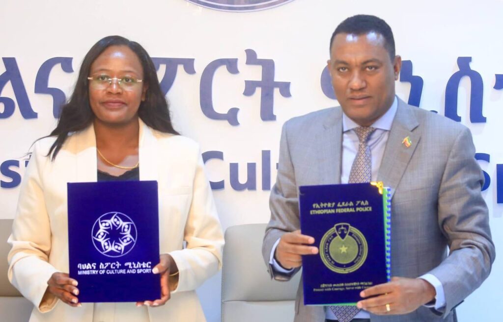 የኢ.ፌ.ዲ.ሪ ባህልና ስፖርት ሚኒስቴር እና የአትዮጵያ ፌደራል ፖሊስ አበረታች ቅመሞች ወንጀሎችን ለመከላከልና የናሙና ምርመራ ላብራቶሪ ለማቋቋም የሚያስችል የመግባቢያ ሰነድ ስምምነት ተፈራረሙ