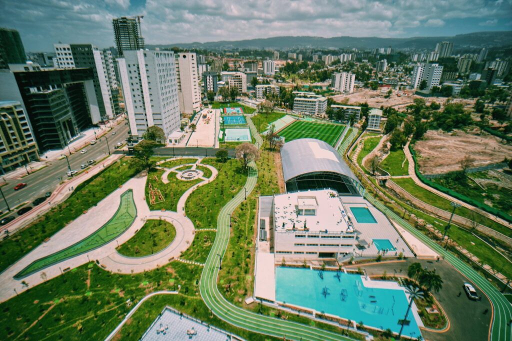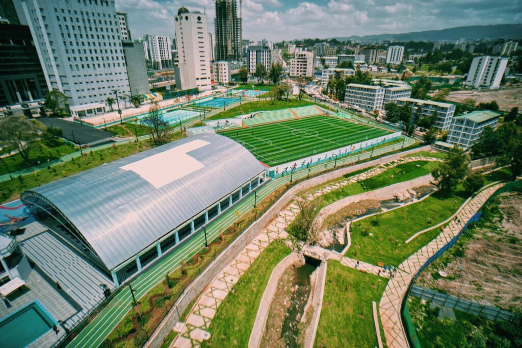 ‎• 5.7 ሄክታር መሬት ላይ ያረፈ ዓለም አቀፍ ደረጃውን የጠበቀ የስፖርት እና የአረንጓዴ መዝናኛ ስፍራ፤