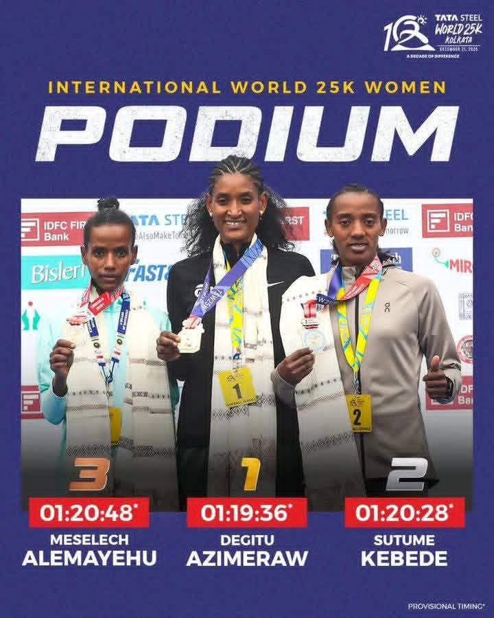 በሕንድ ኮልኮታ የታታ ስቲል የ25 ኪሎሜትር ውድድር አትሌት ደጊቱ አዝመራው አሸንፋለች ።